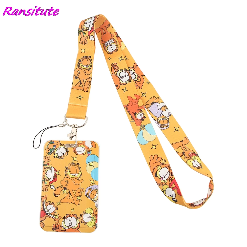 Name: Ransitute R1495 gato amarillo creativo cordón titular de la tarjeta de estudiante cuello colgante Cordón de teléfono placa acceso al Metro titular de la tarjeta
